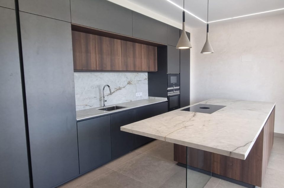 Además, trabajamos con materiales respetuosos con el medio ambiente, como el PET reciclado o el aluminio 100 % reciclable, para que disfrutes de una cocina bonita, duradera y sostenible. Y si buscas tecnología, contamos con las últimas innovaciones en electrodomésticos integrados, sistemas de apertura y soluciones de almacenaje inteligentes.